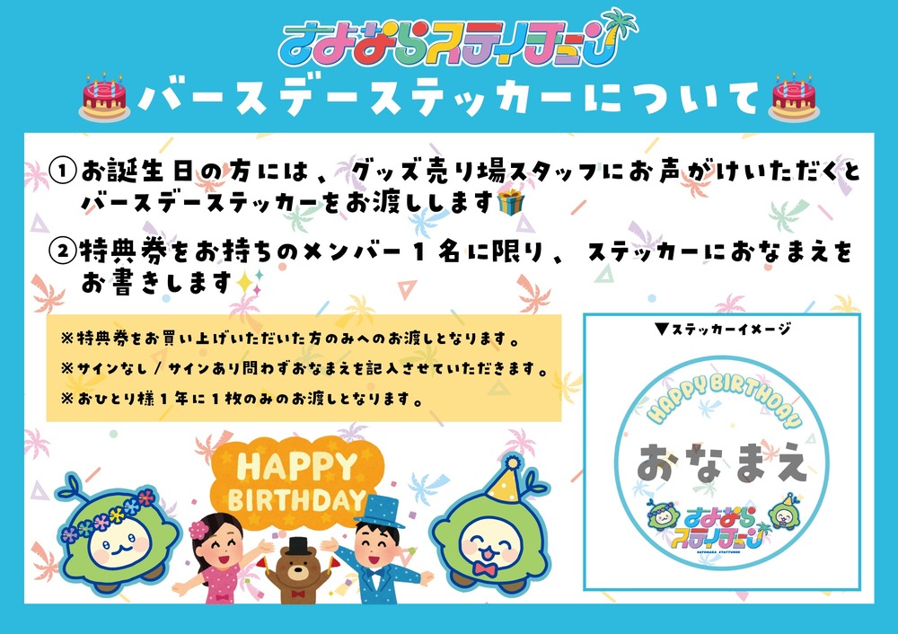 さよならステイチューンお誕生日特典について NEWS お知らせ さよならステイチューン OFFICIAL SITE 2026/01/15 21:30 フォロー 詳しくは画像をご確認ください。 URLをコピーする 報告する